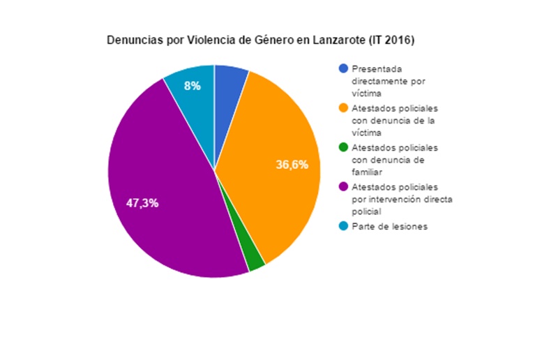 En concreto, se registraron 112 denuncias en Lanzarote en los primeros tres meses de este año, de las que sólo seis fueron presentadas directamente por las víctimas. La mayoría, en total 53, fueron mediante atestados policiales por intervención directa policial, mientras que 41 fueron por atestados policiales con denuncia de la víctima, nueve por parte de lesiones y tres por atestados policiales con denuncia de familiar. Eso sí, según refleja el Centro de Datos del Cabildo, que recoge las estadísticas publicas por el Consejo General del Poder Judicial (CGPJ), no hubo ninguna renuncia al proceso.