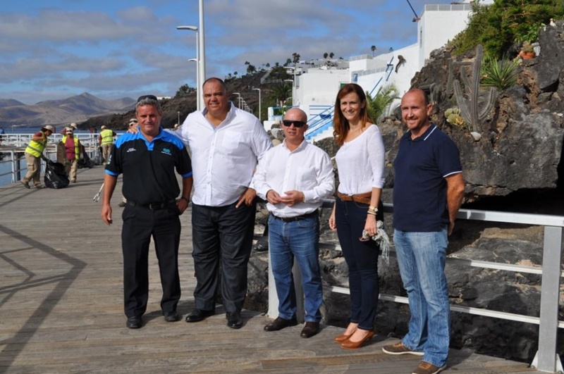 El alcalde de Tías, Pancho Hernández acompañado por el consejero de Empleo y Nuevas Tecnologías del Cabildo de Lanzarote, Manuel Cabrera, así como por los concejales de Playas y de Turismo del municipio, Nerea Santana y Amado Vizcaíno, respectivamente, visitaron esta mañana la zona de El Varadero donde se están desarrollando las labores de limpieza.