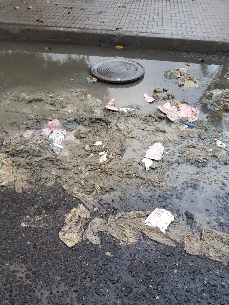 En Playa Blanca también se han registrado incidencias con el agua caída, que las alcantarillas han sido expulsadas y con ellas los residuos que transportan.