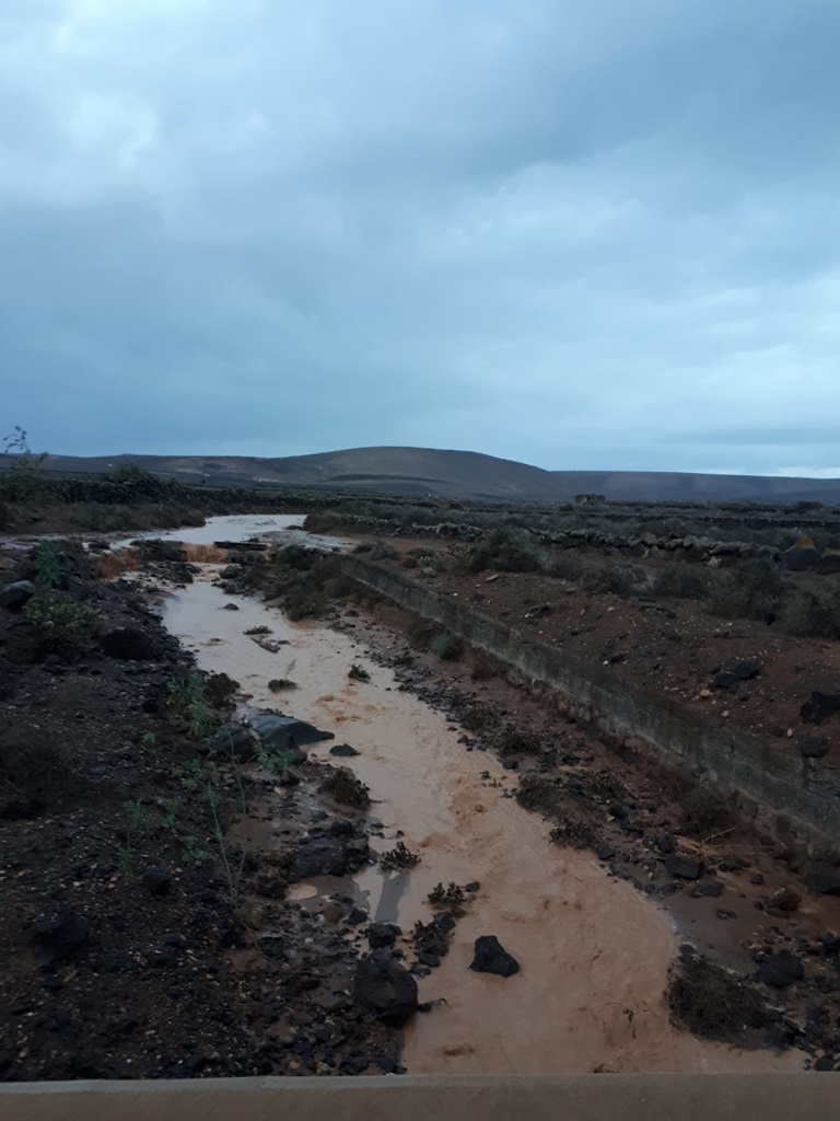 Los barrancos de Lanzarote han empezado a correr gracias a la tormenta que está azotando a la isla desde esta madrugada, y que no está siendo tan fuerte como en un principio se esperaba, al menos en cantidad de agua.
