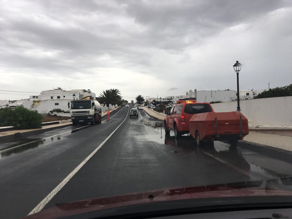 Por otro lado la carretera que va de Tahíche al norte, justo en frente de la cafetería, también sufrió las inclemencias del agua, teniendo que ser cortada para que los servicios de emergencias retiraran el agua que se había acumulado.