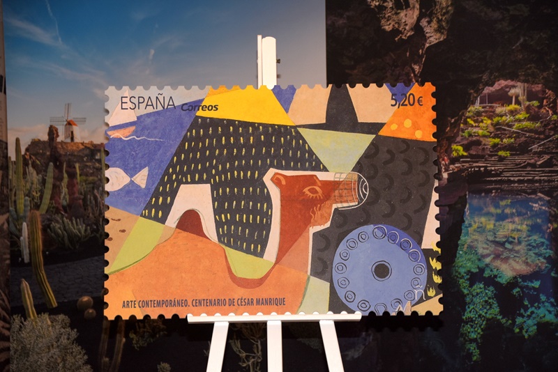Correos ha presentado el sello conmemorativo del centenario del nacimiento de César Manrique, que la institución que lleva su nombre está celebrando desde el pasado 24 de abril y continuará haciéndolo hasta la misma fecha de 2020.