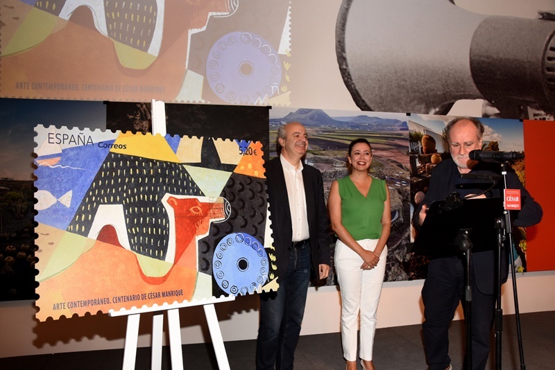 La presentación, a la que asistió el director de la FCM, Fernando Gómez Aguilera, y el director de Filatelia de Correos, Modesto Fraguas, así como la presidenta del Cabildo, Dolores Corujo y el hermano del artista lanzaroteño, Carlos Manrique, ha tenido lugar en la sala José Saramago de La Plazuela en Arrecife.