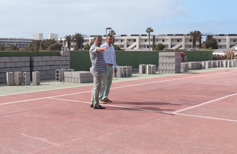 El concejal del área de Deportes, José Alberto Umpiérrez, explicó al alcalde cuál es el estado de las obras, cuya finalización se prevé para principios del mes de noviembre, y que “servirá de punto de encuentro de la cantera de jugadores de los clubes de Costa Teguise, así como cancha en la que poder entrenar y disputar partidos”.