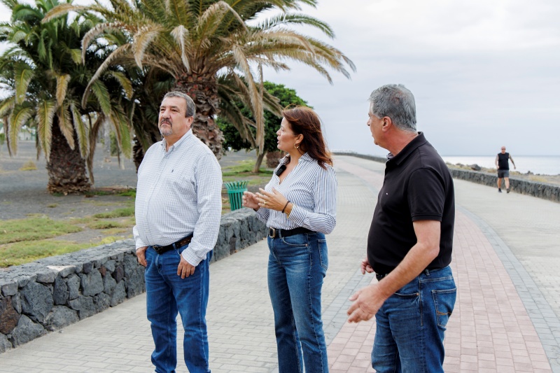 En la mañana de este martes, el consejero de Industria y Energía del Cabildo de Lanzarote, Miguel Ángel Jiménez, y la alcaldesa de Teguise, Olivia Duque, junto al concejal de Obras de Teguise, Eugenio Robayna, visitaron las actuaciones que se están desarrollando para la mejora de la eficiencia energética y el alumnado público en la avenida Cocederos, en el paseo marítimo de Costa Teguise.