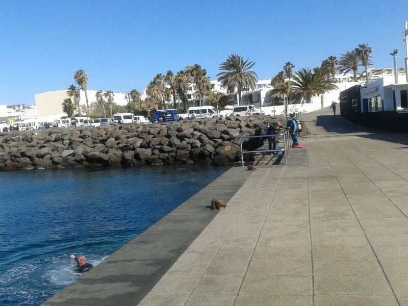 El alcalde de Tías, José Francisco Hernández, explica que el Consistorio presentó varios proyectos a Costas, entre ellos el de mejorar el muelle de Playa Chica para que los buzos puedan entrar mejor al agua.