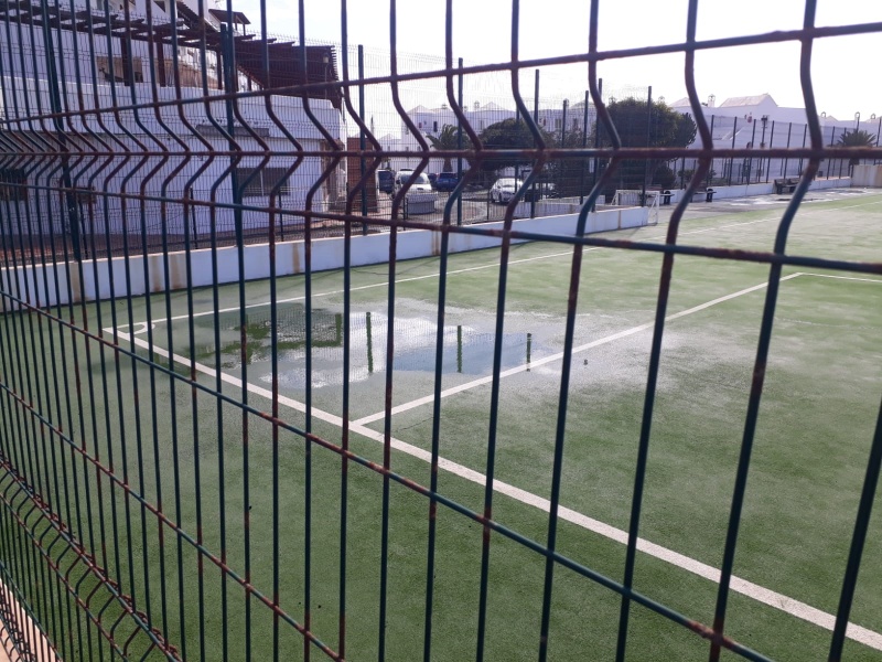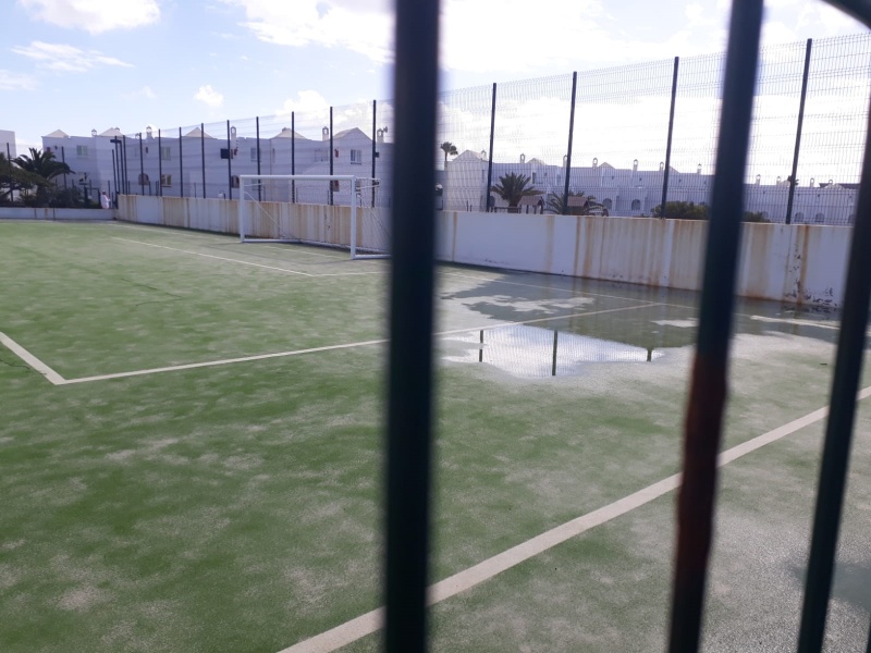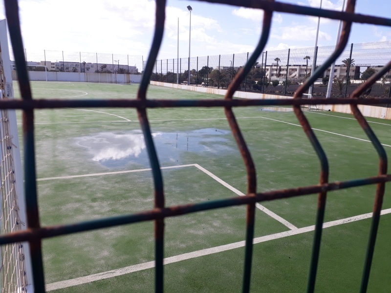 Críticas al mal estado del campo de fútbol 7 de Costa Teguise