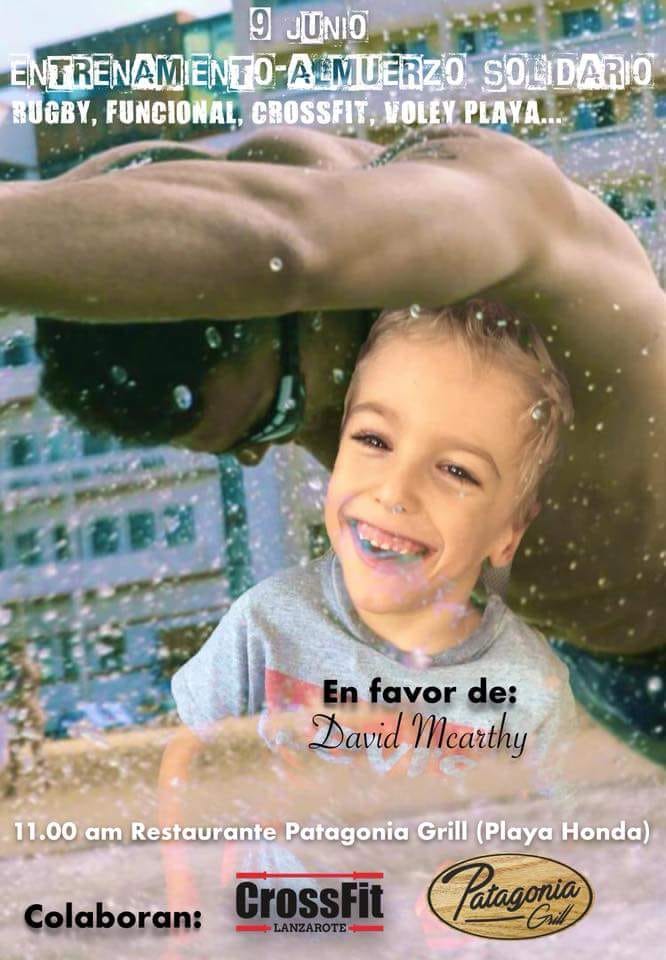 Crossfit Lanzarote organiza para mañana sábado 9 de junio un entrenamiento y almuerzo solidario en favor de David Mcarthy, un niño que tiene parálisis cerebral y necesita un asiento especial para mejorar su calidad de vida ya que los padres no pueden hacer frente al coste.