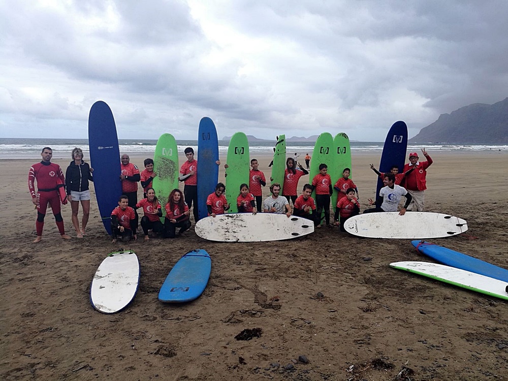 48 niños y niñas seleccionados por Cruz Roja en Lanzarote recibirán clases de surf gracias a una donación