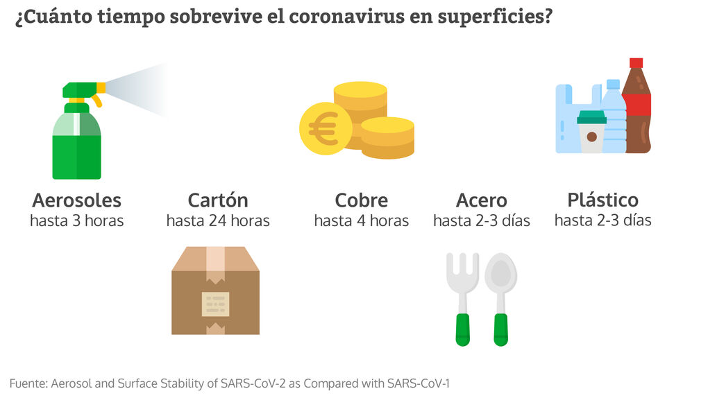 El estudio, publicado en The New England Journal of Medicine, es el primer trabajo que ha logrado proporcionar información clave sobre la estabilidad del virus. Los investigadores que han participado en el mismo han descubierto que el coronavirus es detectable en aerosoles hasta tres horas, cuatro horas en cobre y hasta 24 horas en cartón. En el caso de los plásticos, aumenta aún más el plazo: puede aguantar hasta dos o tres días. Lo mismo ocurre con el acero inoxidable.