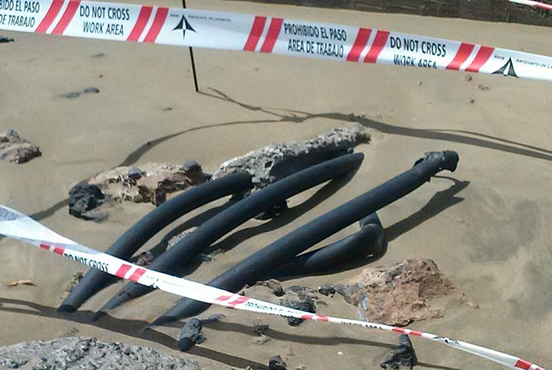 Denuncian el peligro de unos cables de alta tensión al descubierto en la playa cercana a la pista del aeropuerto
