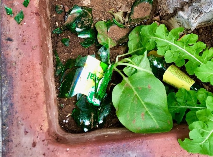 Sin embargo, los días de mayores molestias los sufren durante el fin de semana en el que el entorno se convierte en una especie de sala de fiestas en la que todo vale y donde se pueden encontrar desde botella, vasos y colillas entre las plantas y el por el suelo, hasta vómitos, escupitajos en las puertas o individuos orinando en las fachadas de las viviendas ubicadas en el referido espacio; incluso restos y salpicaduras de sangre en las paredes y suelos producto de una reyerta, como la que hubo el sábado pasado, amén del ruido generado por la actividad nocturna de la zona. Algunos denuncian que desde algún bar de la zona se colocan, sin ningún rubor, mesas y sillas frente a la entrada de sus viviendas.