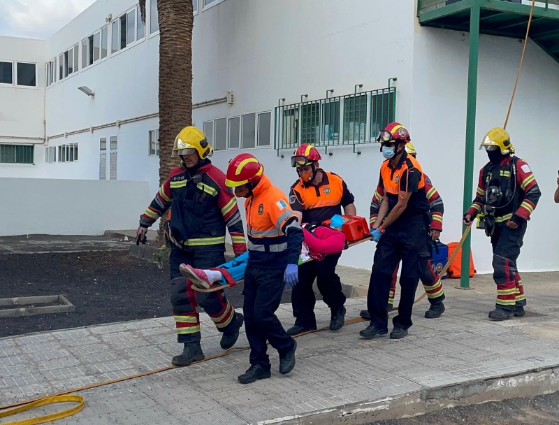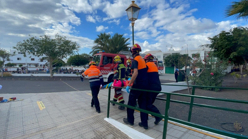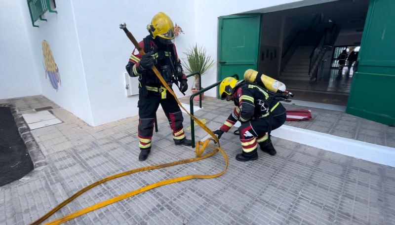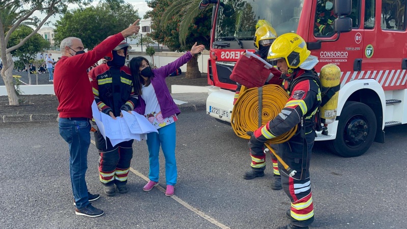 Profesorado, alumnado y resto de personal iniciaban la evacuación tardando 4 minutos y 20 segundos en estar a salvo las casi 700 personas que se encontraban en ese momento en el recinto y, en pocos minutos más, comenzaban a llegar los servicios de emergencia (Policía Local, Bomberos de Lanzarote, Consorcio y Sanitarios).