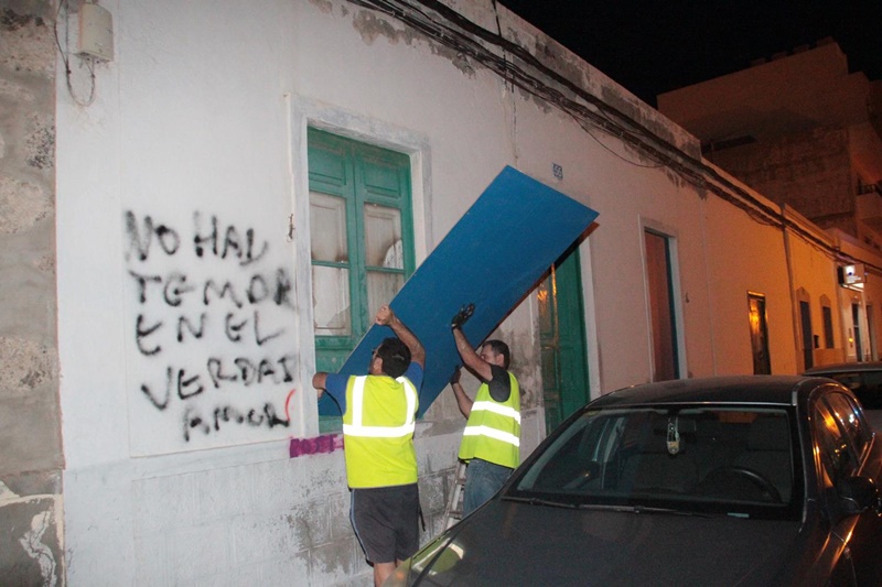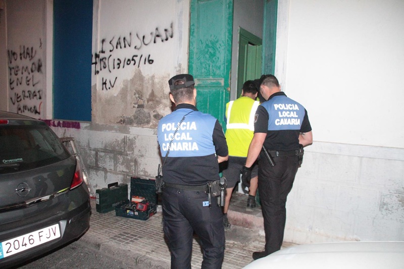 Tras la colaboración de los vecinos y propietarios, anoche sobre las 21.00 horas, el concejal David Duarte junto a diez agentes de la Policía Local y dos operarios del Ayuntamiento de Arrecife tapiaron las viviendas con el apoyo vecinal.