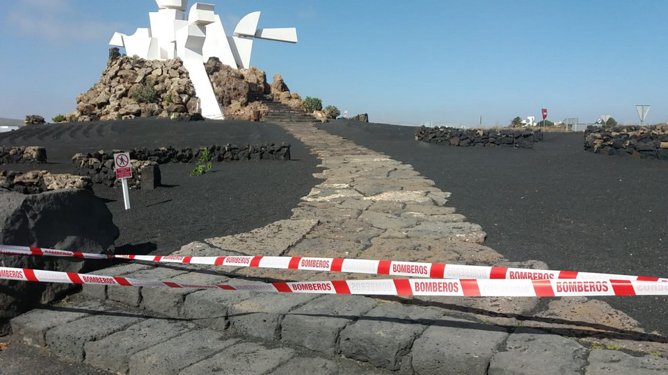 Los bomberos del Consorcio de Seguridad y Emergencias del Cabildo de Lanzarote se trasladaron de inmediato hasta el lugar y balizaron la zona para evitar que nadie se acercara hasta las inmediaciones de la escultura.