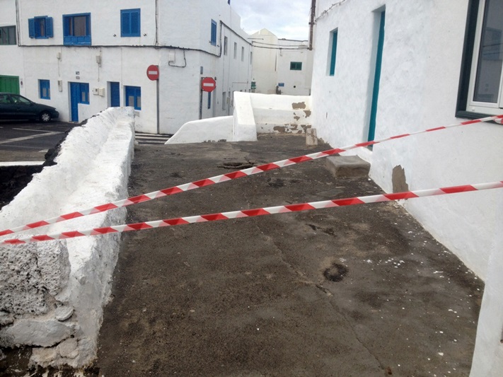 Acordonado. Así se encuentra en estos momentos el muellito ubicado en el barrio de Las Rosas de Punta Mujeres, después de que los bomberos hayan tenido que acudir a primera hora de esta mañana tras ser avisados de que se había desprendido parte del mismo.