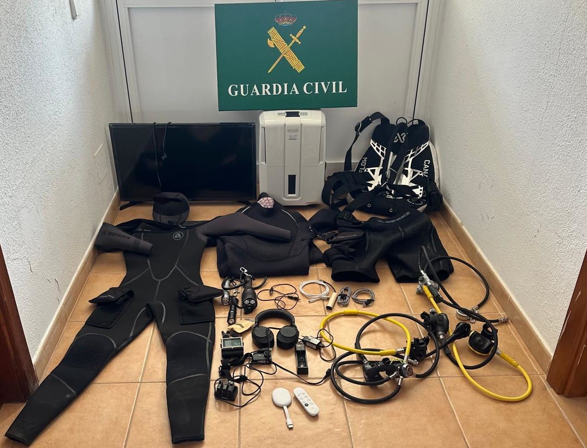 Sustrajo material de submarinismo y un deshumidificador valorados en unos 8.700 euros fueron devueltos por la Guardia Civil a su legítimo propietario
