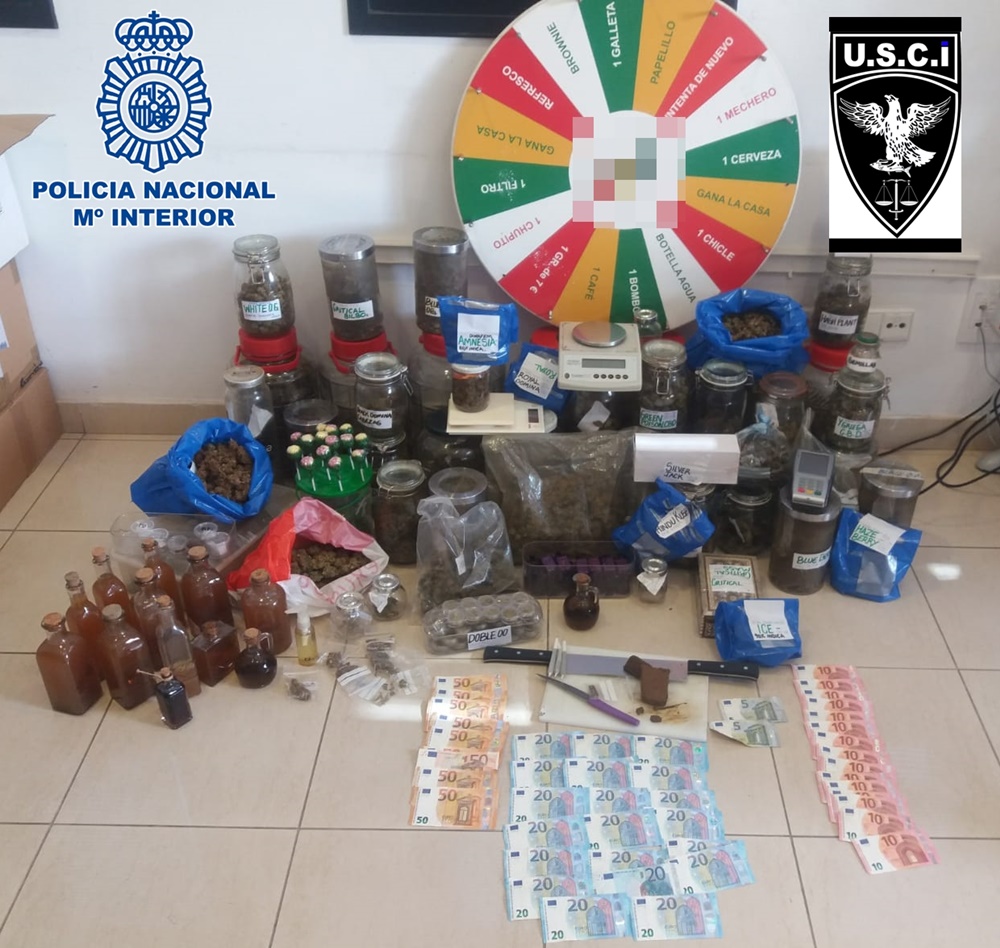Con la preceptiva orden judicial, los agentes policiales llevaron a cabo un registro, en el que fueron intervenidos 4.900 gramos de marihuana, 97 gramos de hachís y 950 euros en efectivo.