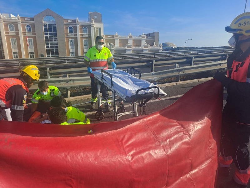 Los Bomberos, alertados por el Consorcio de Seguridad y Emergencias, colaboraron con el personal del SUC para trasladar a los heridos a la ambulancia.
