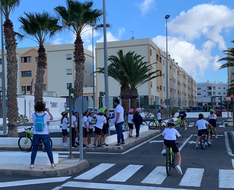 Cómo respetar las señales de tráfico, cómo utilizar el carril bici y cómo controlar la velocidad en la ciudad. Estos son sólo algunas de las normas básicas que aprendieron este martes los alumnos y alumnas del CEIP Ajei de San Bartolomé.