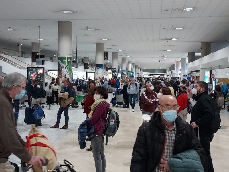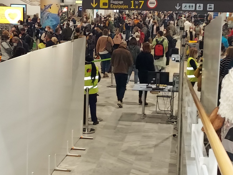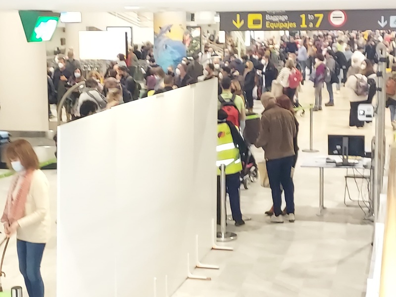 Cuando coinciden cuatro o cinco aviones en un intervalo de media hora la terminal 1 del Aeropuerto de Lanzarote, éste comienza a mostrar sus debilidades y sus costuras.