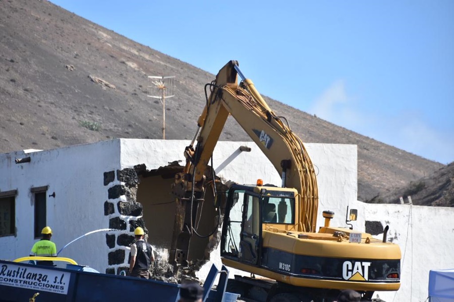 Pese a la presencia del arquitecto municipal y del alcalde de Tinajo, corroborando el acuerdo de licencia otorgado en 2015 por el Ayuntamiento a esta vivienda del Peñón, lo cierto es que ya comenzó la demolición de parte de la casa del Peñón (Tinajo) de Ricardo Pacheco, que heredó de sus abuelos. De hecho, la pala mecánica derribó este martes esta casa tras instarse a sus propietarios a que sacaran sus pertenencias de las habitaciones que se iban a tirar.