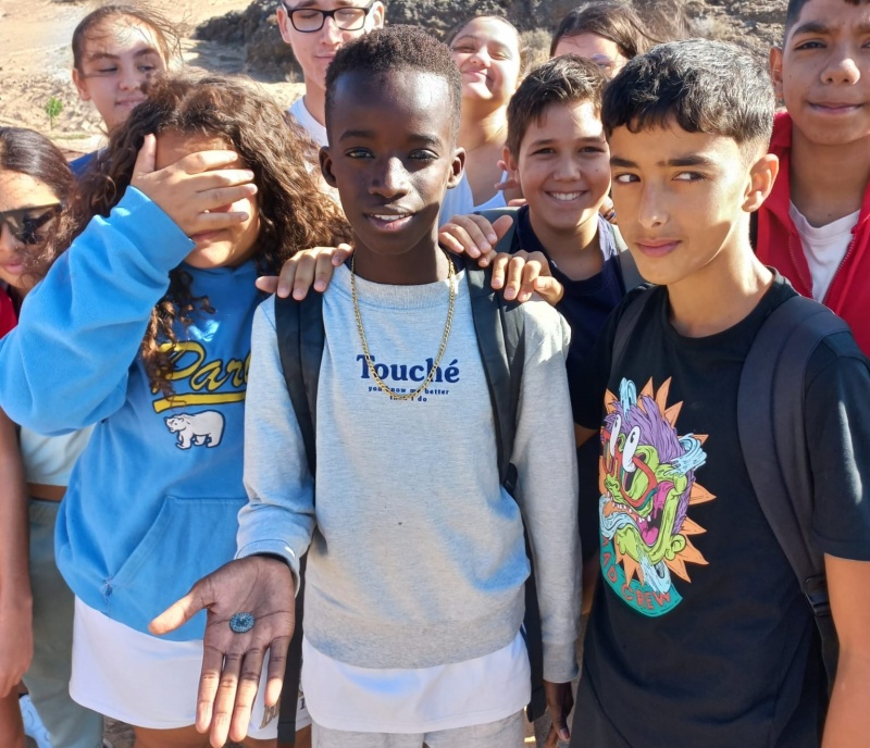 Un estudiante del CEP Playa Blanca encuentra una monea antigua en una visita escolar al yacimiento arqueológico de San Marcial de Rubicón