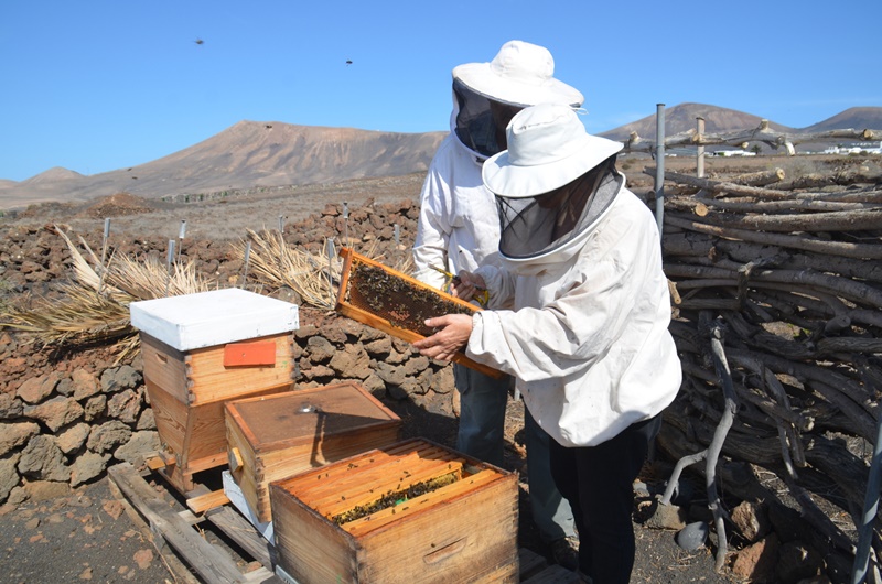 La producción de miel de las sesenta colmenas con las que cuentan varía, dependiendo de las lluvias y la cosecha. “Lo normal es que consigamos entre 200 y 400 kilos de miel, pero este año las condiciones no han sido favorables”, explican, apuntando que la distribuyen en diferentes puntos de la isla, en envases de 300 y 125 gramos y con la certificación ecológica del Gobierno de Canarias.