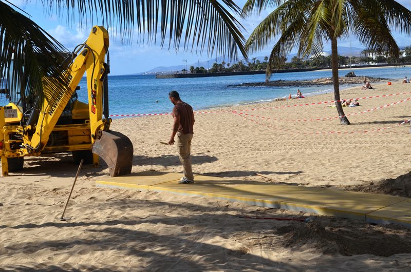 Operarios trabajan desde este lunes para sustituir la pasarela de acceso, así como las duchas y las papeleras