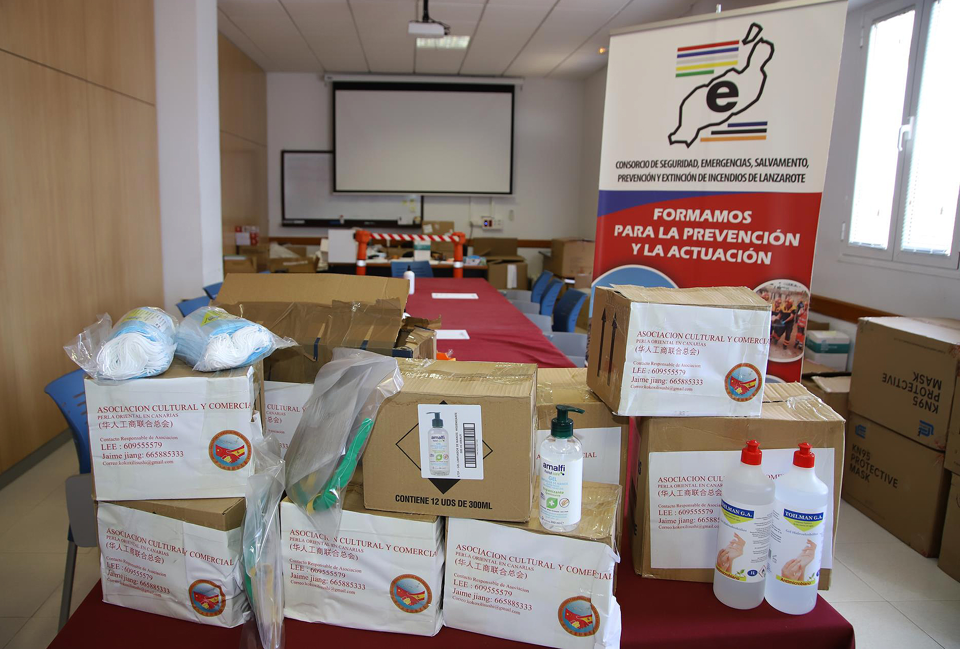 De esta forma el Consorcio de Seguridad y Emergencias recibió en sus instalaciones dos cajas de gel hidroalcohólico de un litro y seis de 300 ml., 500 mascarillas desechables y 25 pantallas protectoras.