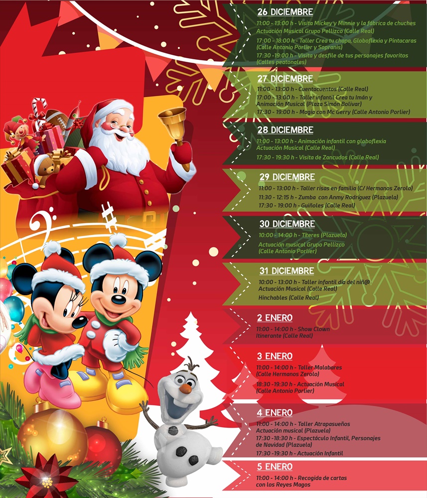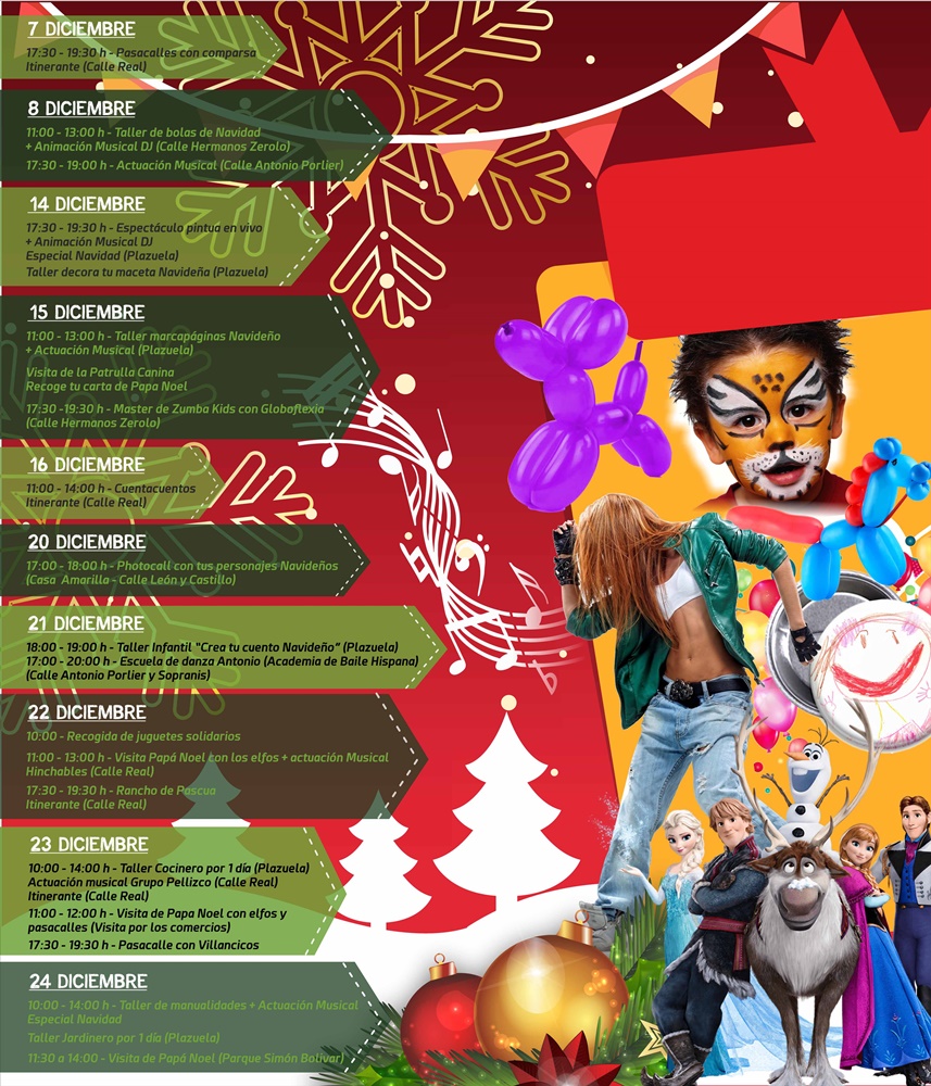 De este modo, durante estas próximas semanas, se han programado numerosas actividades culturales, lúdicas y de ocio, dirigidas a toda la familia, para dinamizar las calles del centro de la capital, como la Calle Real, La Plazuela, y sus zonas aledañas, así como las calles Hermanos Zerolo, Antonio Porlier y el parque Simón Bolivar.