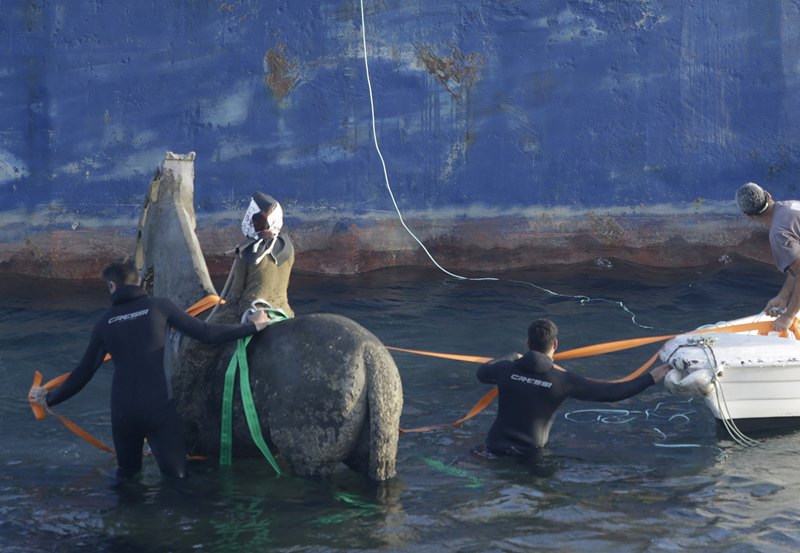 Los trabajos se iniciaron a primera hora de la tarde y consistieron en el izado de las esculturas a una embarcación con una grúa capaz de soportar hasta 9 toneladas de peso, y su posterior traslado a tierra. Las esculturas permanecerán depositadas en instalaciones propiedad del Cabildo de Lanzarote.