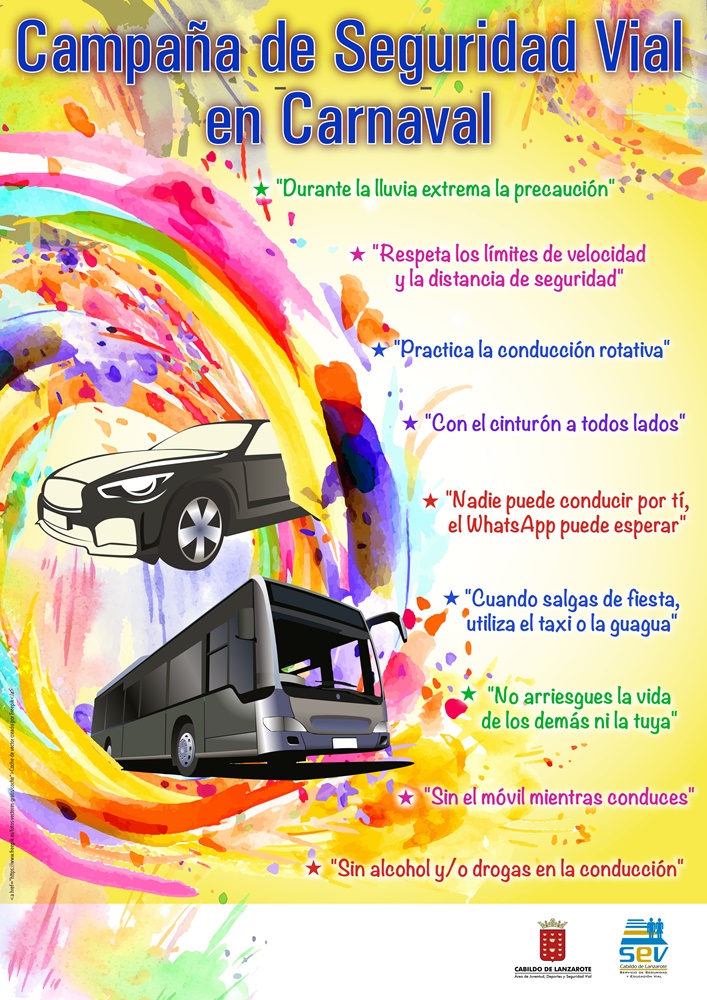 El Servicio de Educación Vial del Cabildo de Lanzarote – SEV, dependiente del Consejero de Juventud y Educación Vial, Óscar Pérez Cabrera, pone en marcha la campaña Seguridad Vial en Carnaval dentro de la labor de prevención y concienciación hacía la ciudadanía, con la finalidad de reducir el número de siniestros viales. Esta propuesta hace hincapié en el uso de los transportes públicos, recomendación que evitaría la posibilidad de producir un accidente o sufrir las consecuencias de la conducta inapropiada de otros conductores.