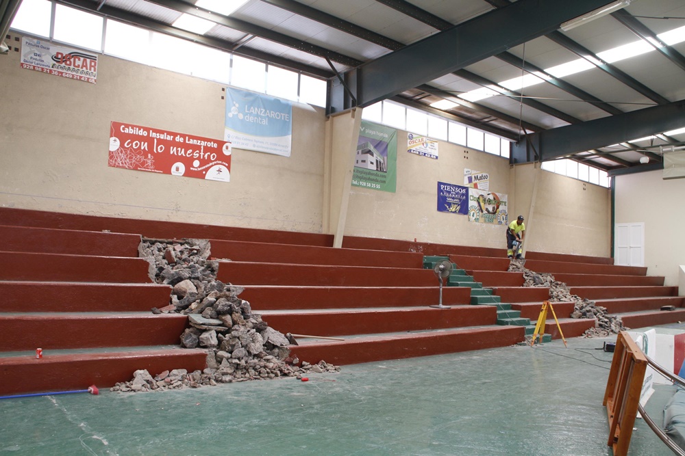 Estas mejoras, que se prevé concluyan antes de la finalización del próximo mes de agosto, se suman -recuerda la consejera- a otras acometidas recientemente en el principal recinto deportivo de la isla "como la habilitación de dos nuevas salas de gimnasio; la repavimentación del pabellón cubierto, pistas de squash y gimnasio; la instalación de una grada retráctil en el pabellón; y la renovación del lucernario de los techos del gimnasio, pabellón y terrero, así como de las canalizaciones, por un montante cercano a los 550.000 euros".