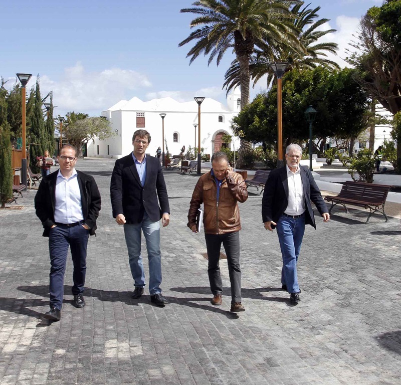 El alcalde de Tinajo, Jesús Machín, y el primer teniente de alcalde, Antonio Morales, recibieron este lunes, 24 de febrero la visita en su municipio del presidente del Cabildo de Lanzarote, Pedro San Ginés, quien estuvo acompañado también por el consejero de Obras Públicas de la primera Corporación, José Antonio Gutiérrez, por la directora de Planificación de Proyectos, Alejandra Martinón, y por el equipo técnico de esta unidad del Cabildo.