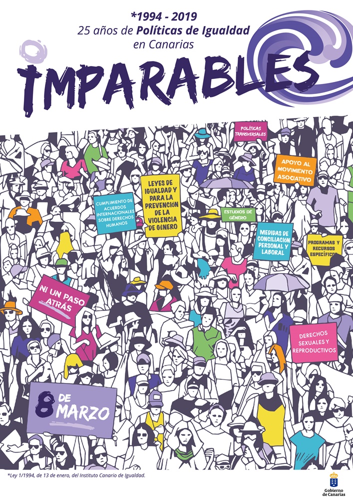 En este sentido, Maite Corujo recuerda que el Instituto Canario de Igualdad (ICI), en su cartel conmemorativo del Día de la Mujer bajo el lema 'Imparables', también destaca la determinación, firmeza y perseverancia de las mujeres y de cada vez más hombres para que todas las personas cuenten con los mismos derechos, libertades y oportunidades.