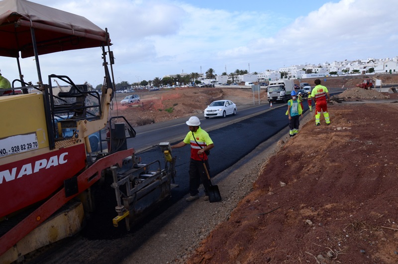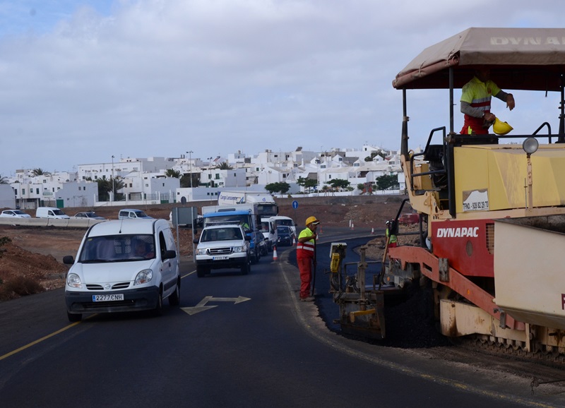 El carril extra que se habilitará en el punto de unión de la Circunvalación entre Arrecife y Tahíche ya está casi listo. Maquinaria y operarios trabajaban este martes en su asfaltado.