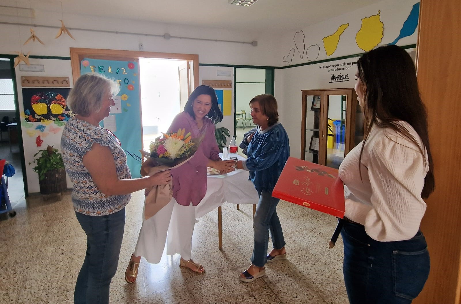 La edil, que visitó las instalaciones del centro, entregó un ramo de flores a su directora, Concepción Martín, como símbolo de reconocimiento a la labor del centro y su equipo docente.