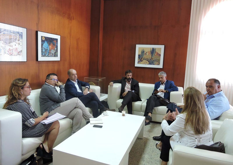 El consejero de Economía, Industria, Comercio y Conocimiento del Gobierno de Canarias, Pedro Ortega, se desplazó junto a varios cargos públicos y equipo de su Consejería a Lanzarote este miércoles, para mantener una reunión de trabajo con el presidente del Cabildo, Pedro San Ginés, y los vicepresidentes de la institución, José Juan Cruz Saavedra y Manuel Cabrera, para abordar algunos temas de interés insular que conciernen a su Consejería.