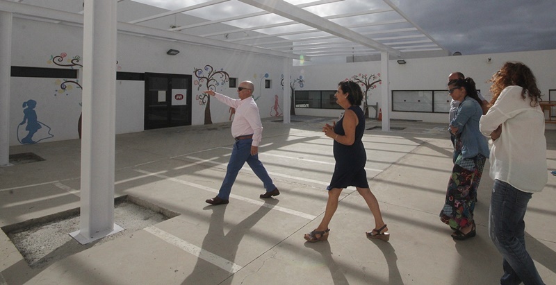 El colegio de La Asomada- Mácher estrenará el curso escolar 2017/2018 un nuevo patio de recreo cubierto con una pérgola para evitar el solajero y viento que asola esta zona del municipio de Tías. El alcalde de Tías, Pancho Hernández, el teniente de alcalde, Amado Jesús Vizcaíno, la concejal de Educación, Aroa Pérez, y la directora del centro, Laura Arránz, han visitado las obras que se ejecutan en este CEIP por petición del Ayuntamiento.