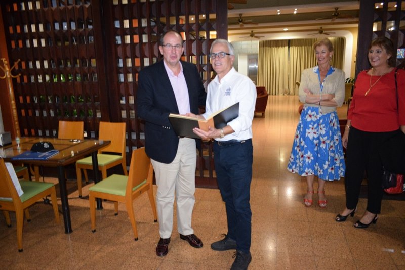 Romero Ortega, le hizo entrega de varios obsequios, entre ellos algunos del Centenario de César Manrique, el libro de los 50 años de la Regata de San Ginés y otros detalles.