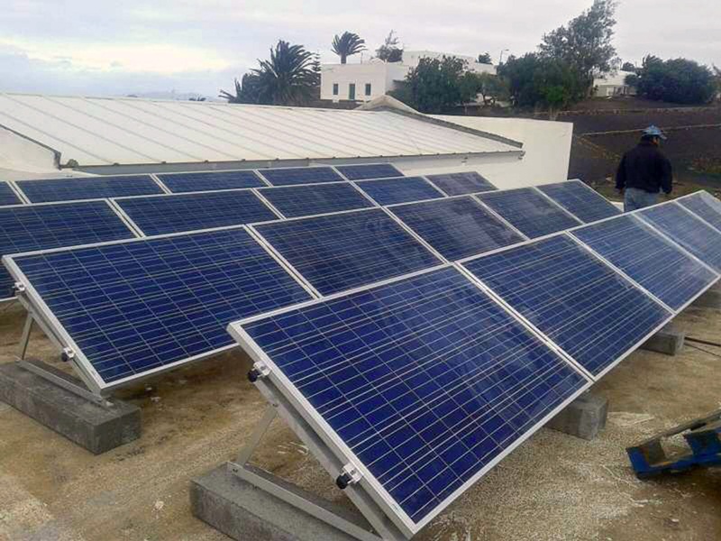 Según informa el Cabildo de Lanzarote, los paneles solares fotovoltaicos se colocaron aprovechando la cubierta plana disponible en la Casa de la Cultura. Se colocaron un total de 20 paneles fotovoltaicos de 250Wp, distribuidos en 1 cadena de 20 paneles en serie, que se conectan al inversor fotovoltaico trifásico de 5.000w nominales situado en el cuarto técnico junto a los equipos de motorización.