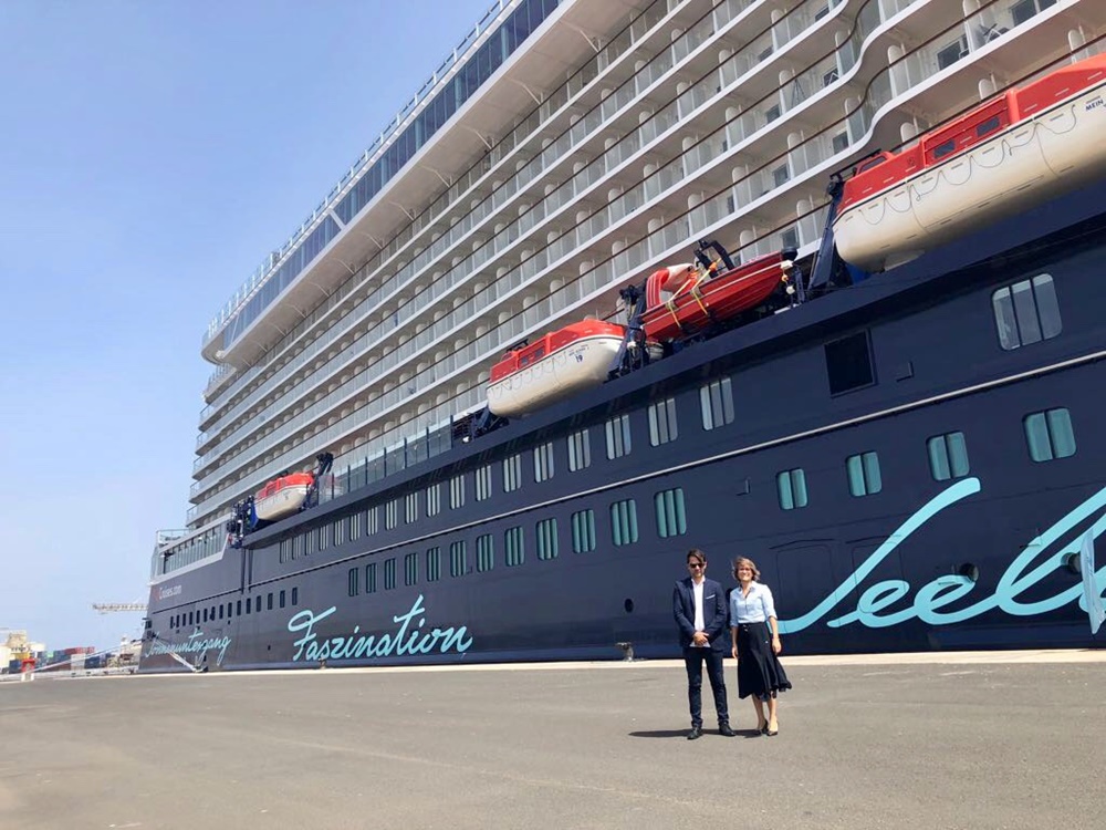 Tras el acto oficial, un miembro de la tripulación sirvió de guía a los visitantes por todo el buque comprobando la magnitud de este. El astillero Meyer Turku (Finlandia) fue quién entregó a finales de abril el buque "Mein Schiff 1", el segundo con este nombre en la historia de la compañía alemana Tui Cruises. Se trata de un nuevo diseño con diversas mejoras. El nuevo buque mide 315 m de eslora, 20 m de eslora más respecto de sus predecesores. Entre las novedades a bordo, están las renovadas áreas cubiertas "Lagune" y "Arena" y una estructura acristalada de casi 50 m de largo a cada banda en el último tercio de la sección de popa.