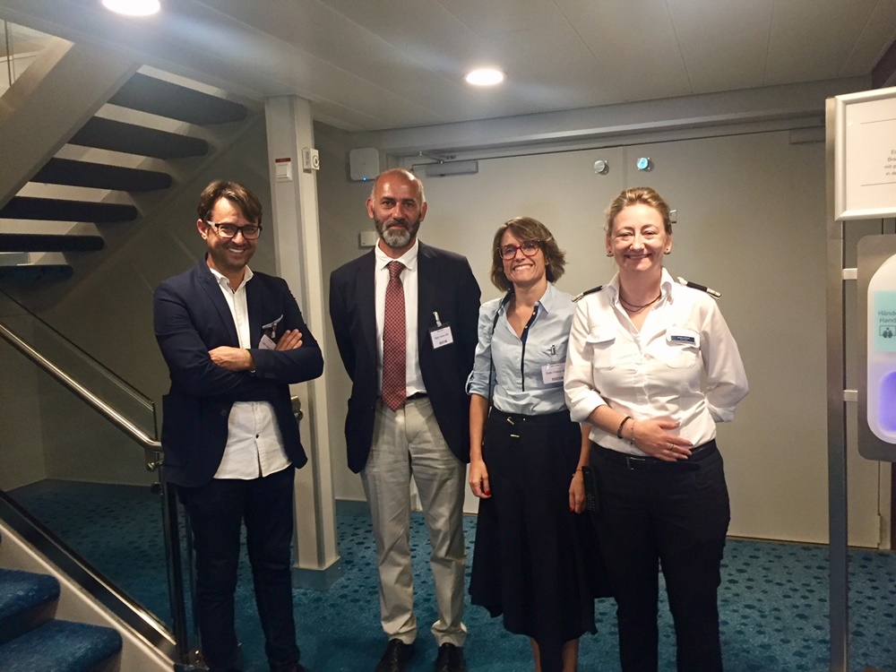 En el acto, junto al capitán del barco y otros miembros de la tripulación, también estuvo presente el delegado de la Autoridad Portuaria de Las Palmas en el Puerto de Arrecife, Aitor Galán, el Jefe del Distrito Marítimo de Arrecife, Juan Carlos Olave, el Policía Nacional José Corbalán junto a un compañero del cuerpo y la representante de la consignataria Amabilia Guerra.