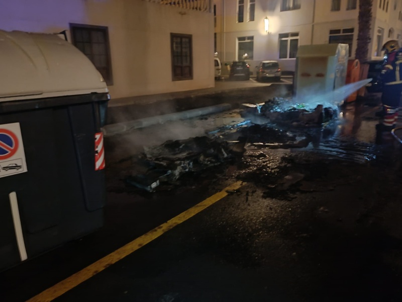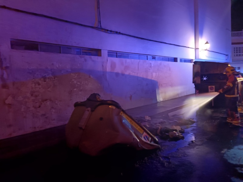 Apenas una hora después eran nuevamente alertados, en esta ocasión por un nuevo incendio en la calle Nicaragua de Arrecife. En esta ocasión, las llamas afectaban a un contenedor de basura orgánica y otro de plástico, además de dañar a un coche que estaba aparcado cerca y a las ventanas y la puerta de un colegio próximo.
