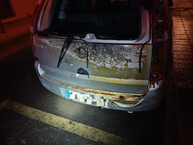 Al llegar comprobaron que el fuego afectaba a tres contenedores de basura orgánica y uno de vidrio, así como a tres vehículos con diferentes daños por culpa de la radiación del incendio.