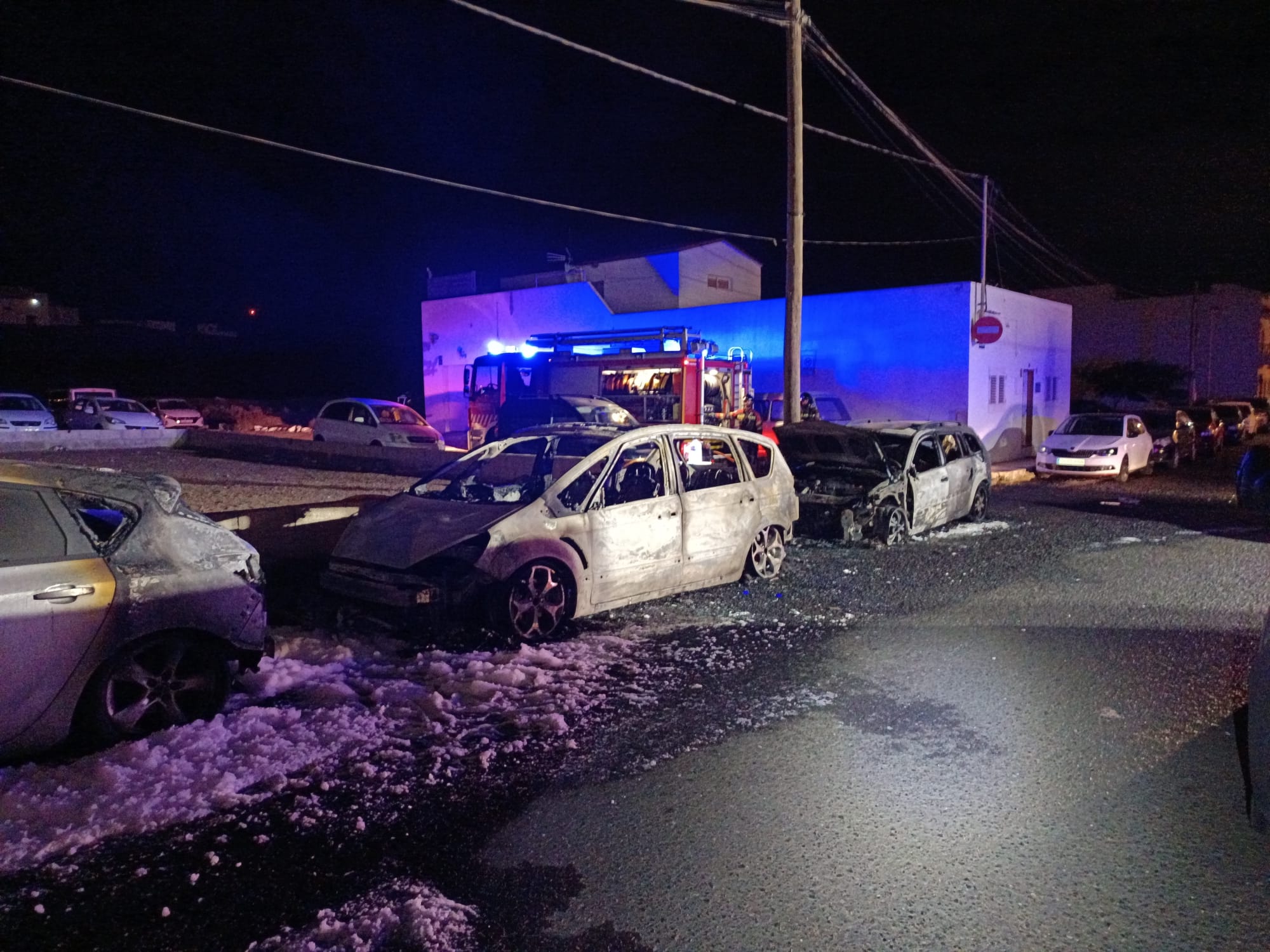 Al llegar comprobaron que el fuego afectaba a tres vehículos, uno ardía en su totalidad, y los otros dos en la parte más próxima al vehículo incendiado.