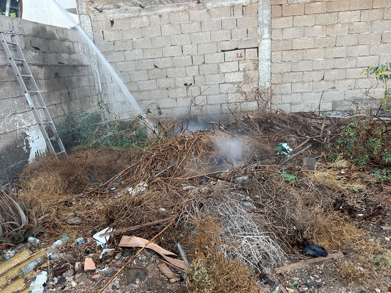 También en la jornada de la tarde de este viernes los bomberos tuvieron que acudir para sofocar un pequeño incendio que se había producido en un solar de la calle Pedro Barba de Arrecife.
