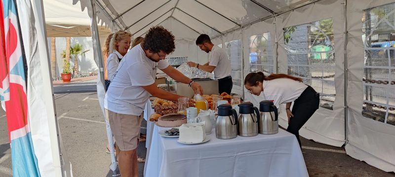 La organización ha ofrecido en la mañana de este lunes un buffet desayuno a los participantes, posteriormente han iniciado una excursión en la que visitarán varias bodegas, finalizando con un almuerzo fiesta en la Bodega Testeina (La Geria).