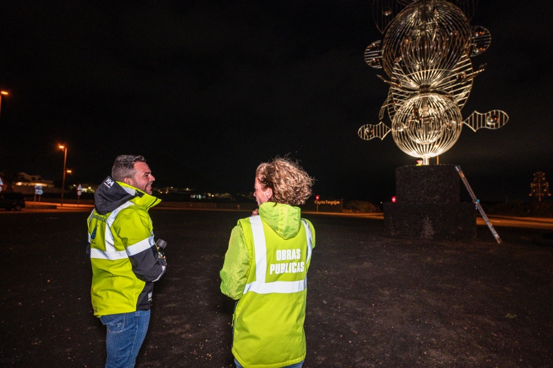 El consejero agradeció la labor de los trabajadores del área de Obras Públicas y el Parque Móvil por realizar esta instalación lumínica "en tiempo récord". "Cumplimos con nuestro objetivo de adecentar, modernizar e iluminar los juguetes de viento de César Manrique, y creo que no existe mejor inicio que con 'Fobos'", apuntó.